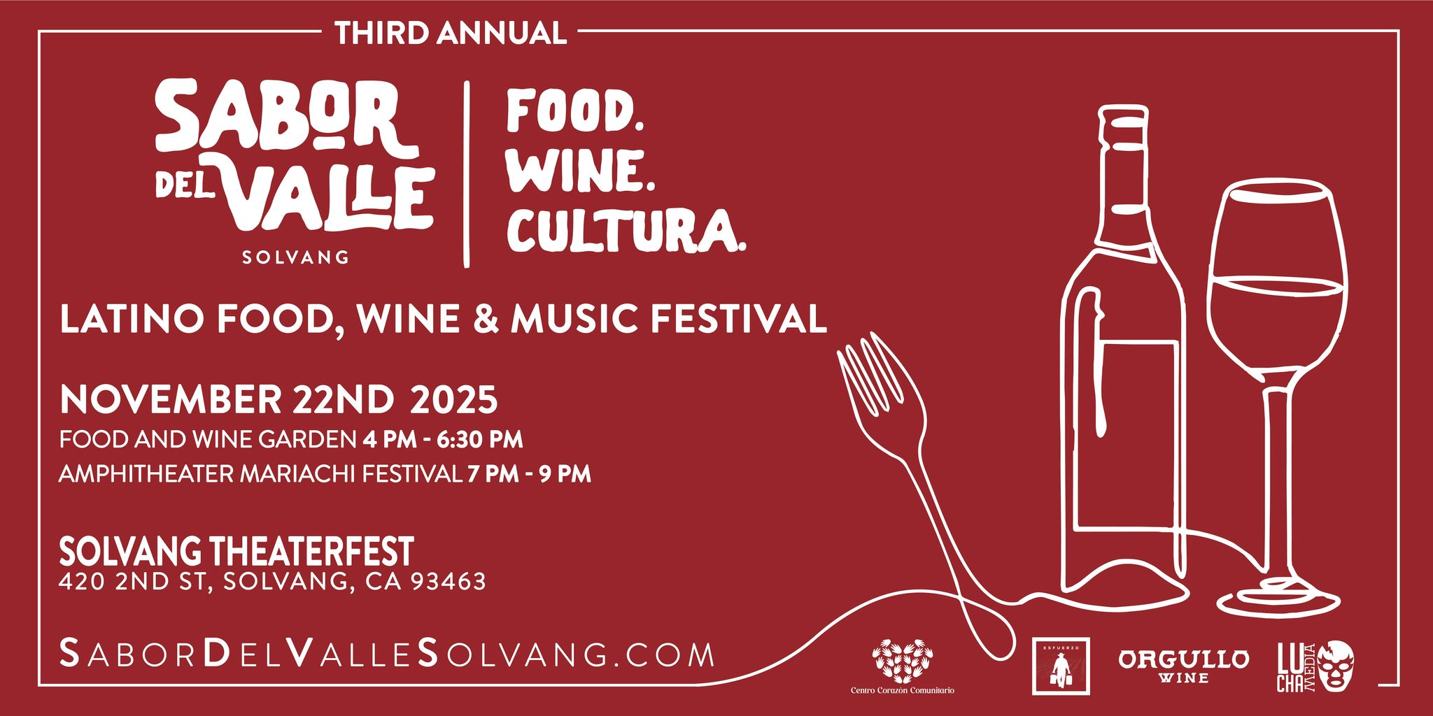Sabor Del Valle Solvang is back! Join us for a harvest celebration at The Solvang Theaterfest with Centro Corazón Comunitario enjoy delicious Latino food, wine, live music and vibrant culture on Saturday, November 15th, 2025.